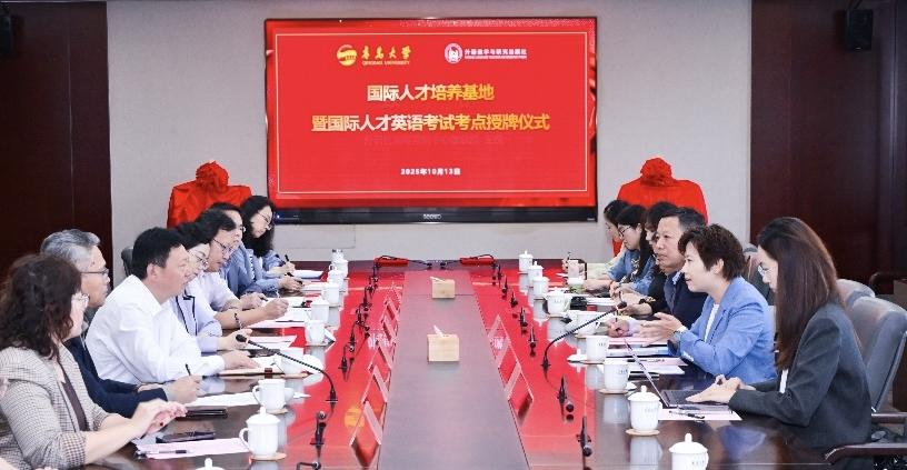 10月13日,我校与北京外国语大学中国外语测评中心共建国际人才培养基地暨国际人才英语考试考点授牌仪式在会议中心302会议室举行。校党委常委、副校长陈涛,外研社高等营销中心副总监王悦,外研社高等营销中心华东大区总经理李洪旺,群p