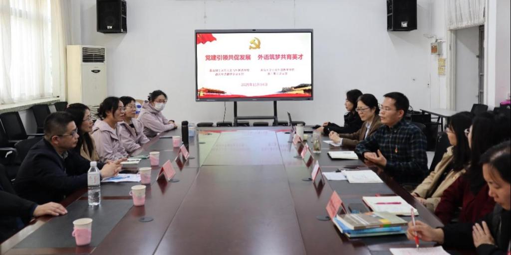 与教工第三党支部在睿思楼202会议室开展“党建引领共促发展,外语筑梦共育英才”支部共建暨主题党日活动,教工第三党支部书记李晓敏主持活动。